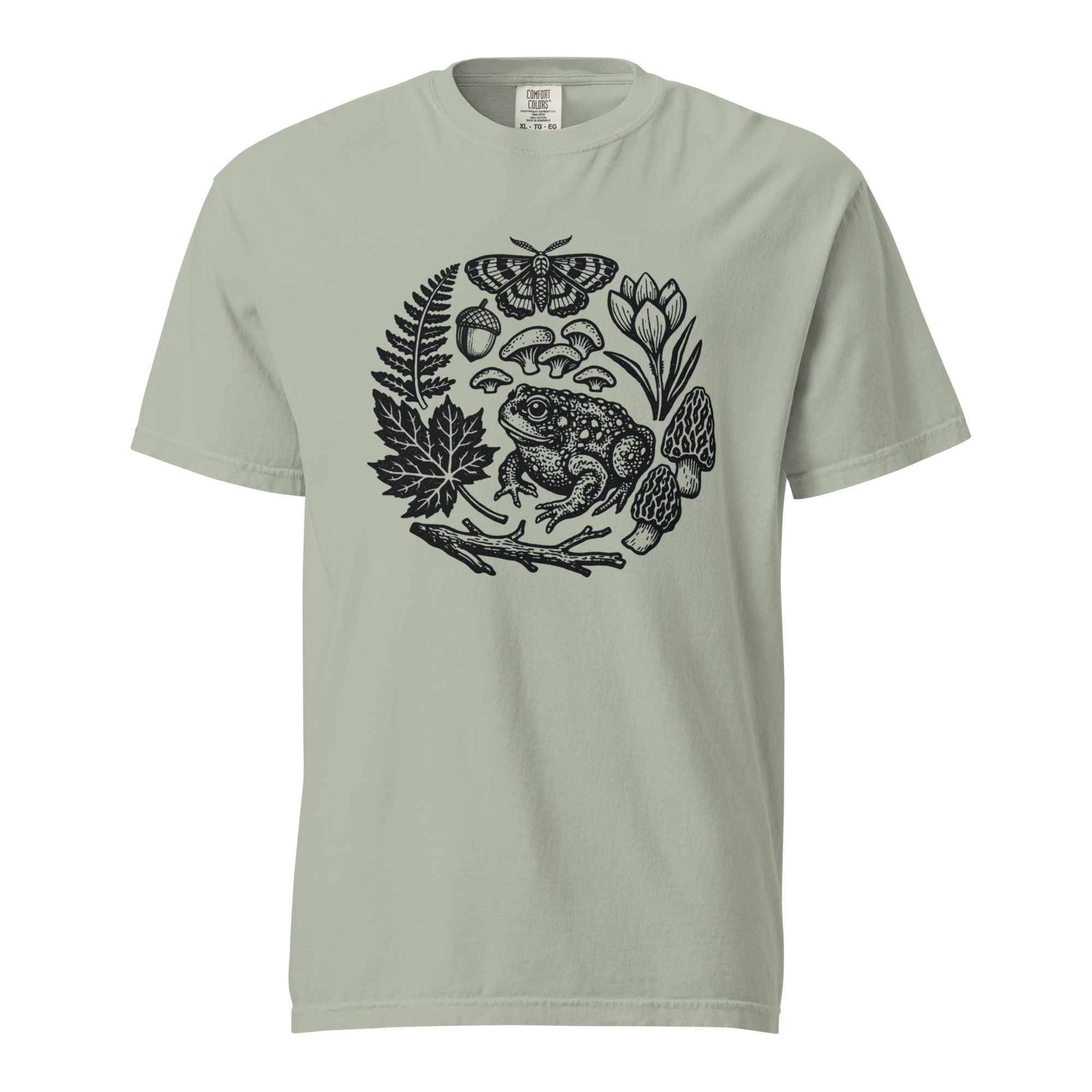 Inspired by forest walks, wild botanicals, and the beauty of foraging, this graphic t-shirt is perfect for mushroom lovers, plant lovers, hikers, gardeners, and anyone drawn to cozy cottagecore and woodland style. The scanned print keeps the organic details of the carved design while making it easy to wear as an everyday art piece.